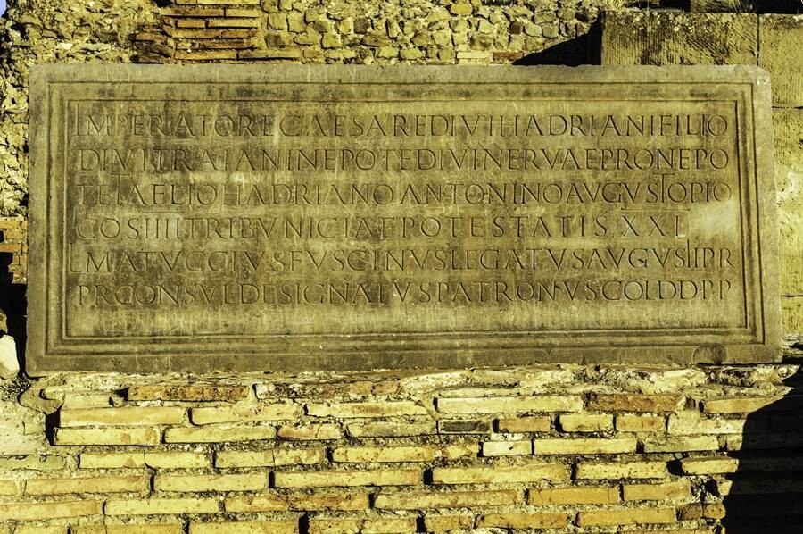 Words in Latin engraved in stone at Timgad.