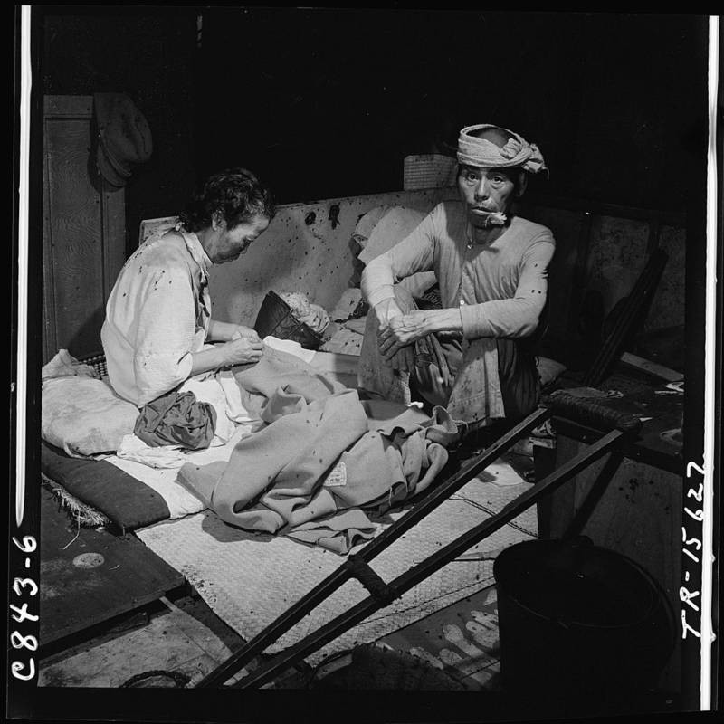 Blast victims recover in a fly-infested, makeshift hospital in a bank building.