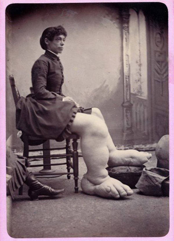 Known as “The Ohio Big Foot Girl,” Fannie Mills suffered from Milroy disease, which caused her legs and feet to become gigantic.