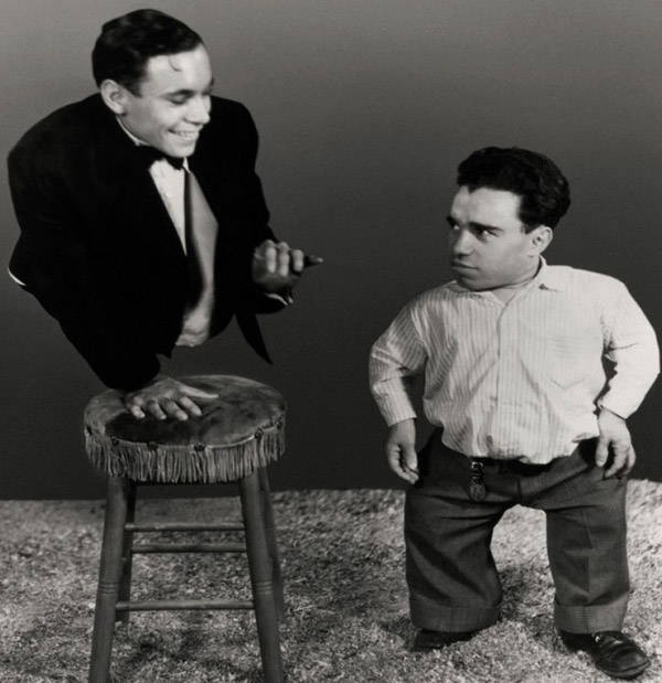 Born without the lower half of his torso, Johnny Eck is seen here with Angelo Rossitto in the film Freaks.
